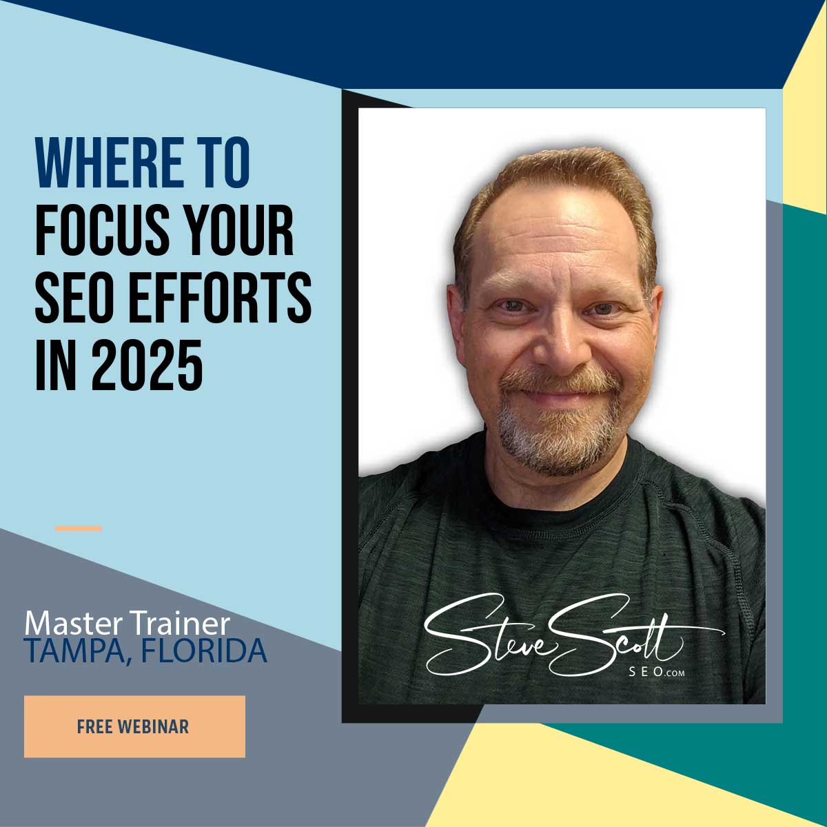 Are you a business owner, online marketer, or website designer feeling overwhelmed by the ever-changing world of SEO? Do you want to ensure your efforts yield measurable results in 2025? Join me, Steve Scott, on Thursday, January 16th, 2025, at 6:00 p.m. Eastern for an exclusive presentation that will clarify your SEO focus and set you on the path to success.